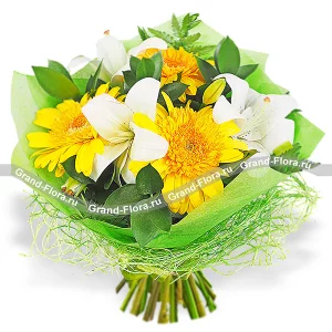 Мечты о лете - букет из кустовой хризантемы и гербер