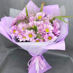 Доброе утро - букет из фиолетовых и желтых хризантем