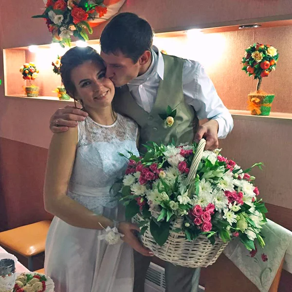 Антонина / г. Ухта / 16.11.2016Оценка букета:Заказывали корзину на свадьбу в другой город. Спасибо, что выполнили композицию красиво и доставили оперативно. Очень довольны!Успехов и процветания Вам!
