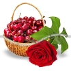 Люкс: роза красная 70 см - 1 шт., черешня - 2 кг., корзина средняя.