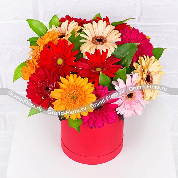Неотразимой - коробка с разноцветными герберами